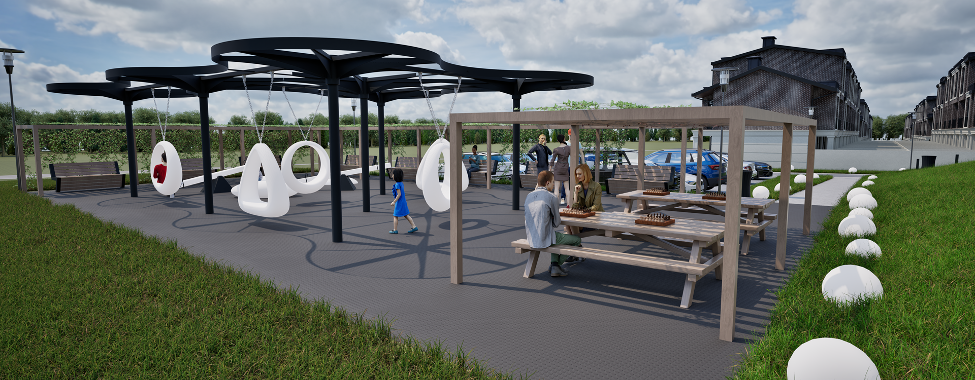 Для любителей активного отдыха разместили воркаут-площадки, спортивные и прогулочные зоны. детские площадки оборудованы так, что каждый житель, не зависимо от возраста сможет проводить больше времени на улице.