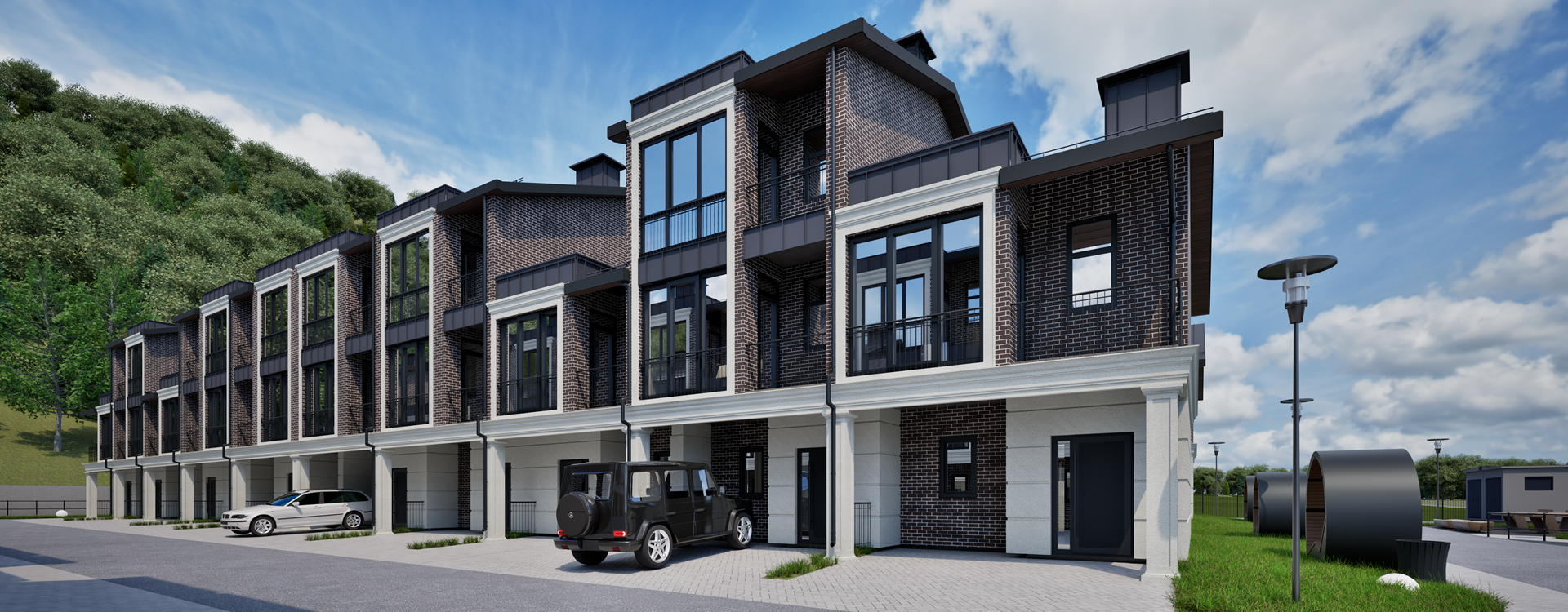 LESCHI - это загородный квартал в экологически чистом районе в окружении гор. 2-х и -3х этажные таунхаусы бизнес-класса. У каждого дома своя парковка и мангальная зона.